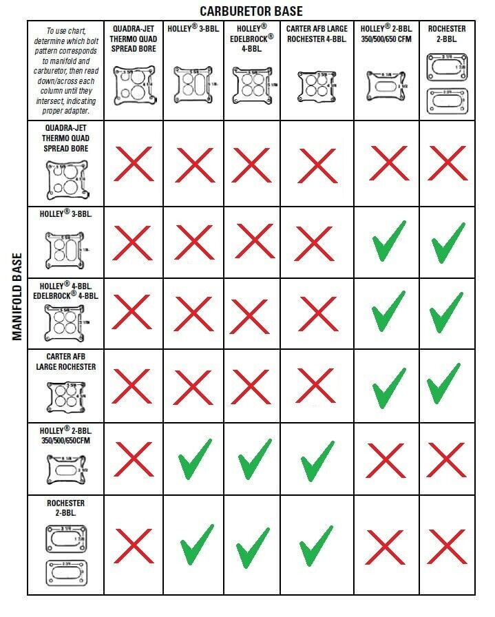 APPLICATION: ADAPT A 4 BARREL TO A 2 BARREL OR A 2 BARREL TO A 4 BARREL INCLUDES: ADAPTER, BOLTS, GASKETS FREE SHIPPING TO THE 48 STATES
