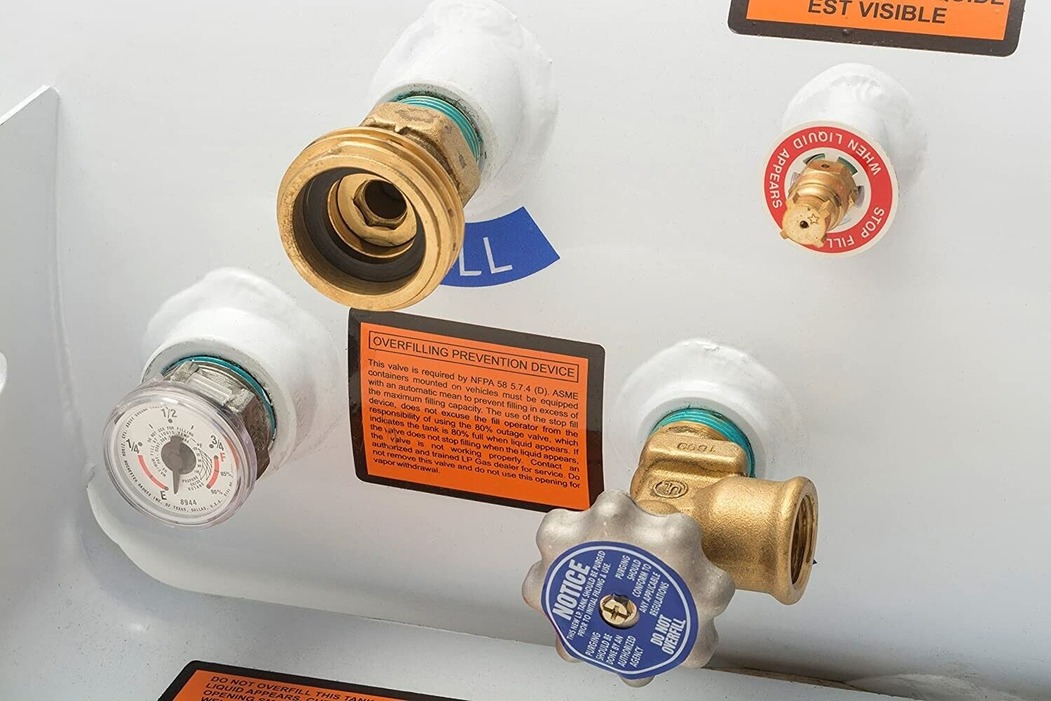 Fill valve, relief valve and level gauge installed