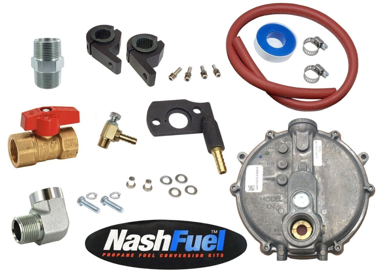 KIT WILL ALLOW YOUR ENGINE TO RUN ON LOW PRESSURE PROPANE LOW PRESSURE NATURAL GAS OR GASOLINE. INCLUDES EASY TO USE BAR CLAMPS, NO DRILLING TO MOUNT REGULATOR.